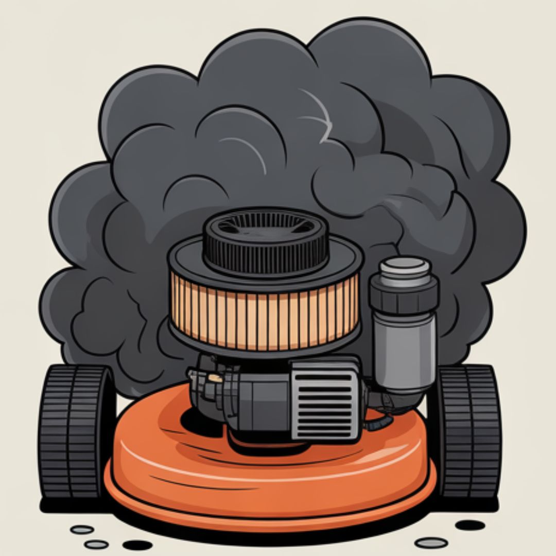 If you see black smoke, your engine’s choking. Pop the filter cover off. If the filter looks like a brownie or smells like stale gas, it’s clogging the carb and making the mower run rich. Tap it out or replace it — takes 10 seconds.